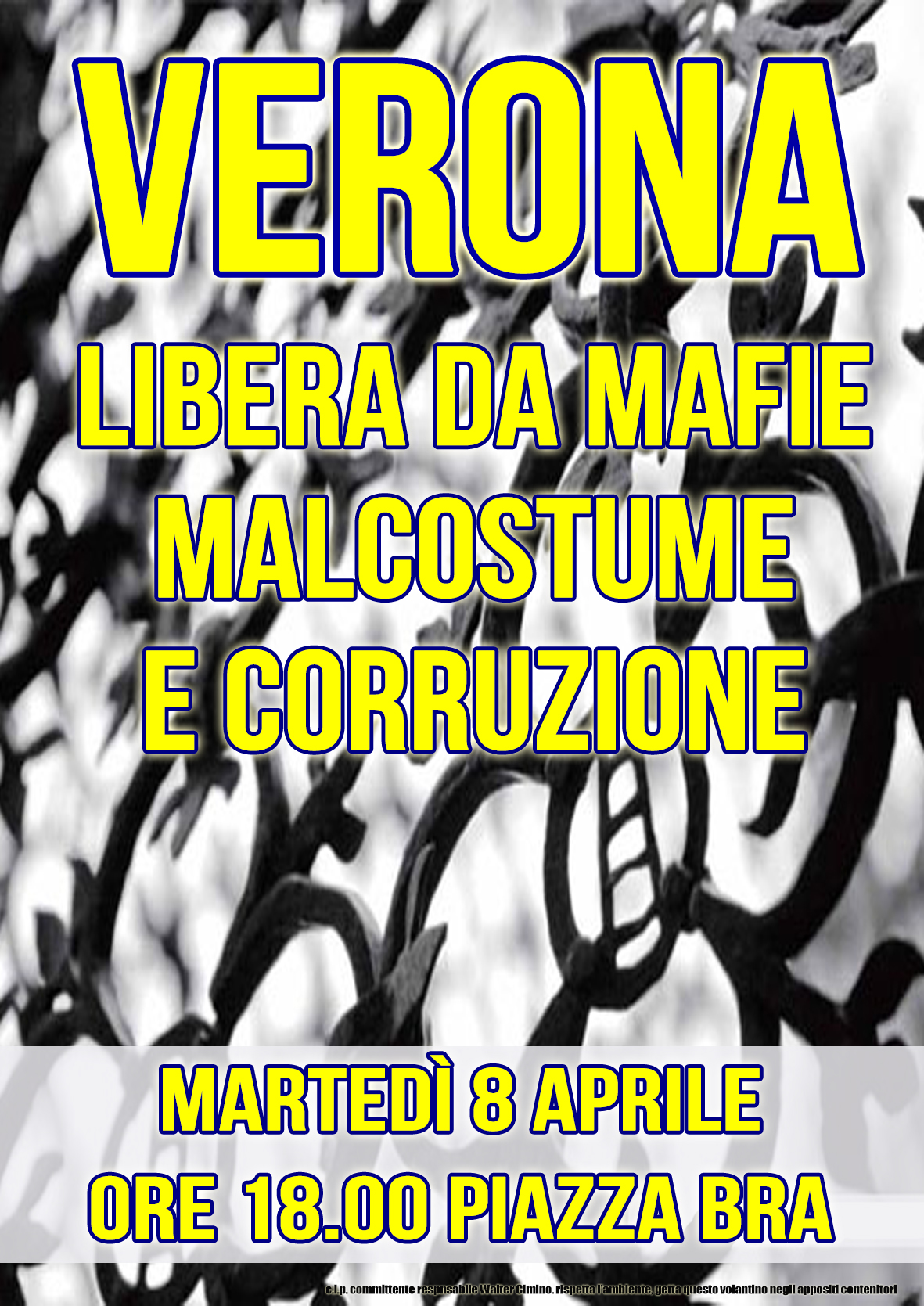 Mobilitazione delle “destre” scaligere, che per prime hanno denunciato determinate situazioni anomale… Invitiamo i lettori che dispongono di televisore a guardare la trasmissione Report, in onda su RAI3 alle 21.15 di lunedì 7 Aprile, la sera prima della manifestazione.