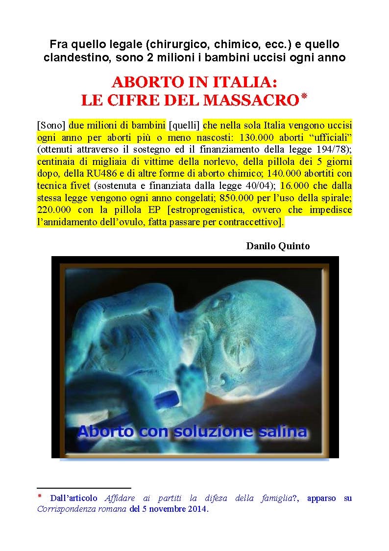 Scienza e Bioetica Bilancio dell’aborto in Italia. Ma chi sono io per giudicare, come direbbe qualcuno? 6 Novembre 2014 da Staff "Christus Rex" Condividi su:Segnalazione di Maurizio-G. Ruggiero