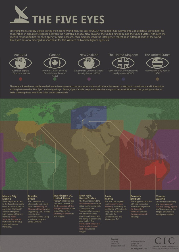 Australia, oggi Australian Signals Directorate (ASD); Government Communications Security Bureau (GCSB) della Nuova Zelanda; e Government Communications Headquarters (GCHQ) inglese crearono un metodo non solo per monitorare, ma controllare cellulari e social network utilizzati per le rivolte socio- politiche.
