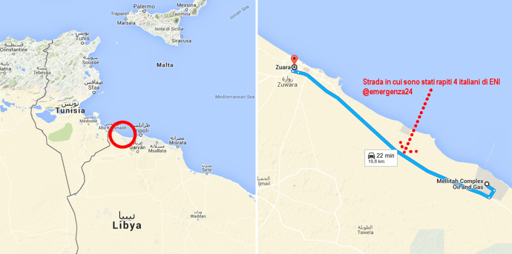 L’Italia “aveva in parte già pagato il riscatto” per i due lavoratori poi trovati massacrati. A qualcuno che poi se l’è squagliata con i soldi ed è sparito. A quanto capisco, abbiamo offerto 12 milioni di euro. La parte (quanti milioni?) l’abbiamo data all’autista che guidava il giorno in cui i due sono stati rapiti, e lui anche. Mohamed Yhaya, un giovinotto che all’Eni consideravano “sospetto”. Probabilmente è stato lui a organizzare il rapimento, ha fatto finta di essere stato anche lui pestato dai rapitori. Dopo un po’ ha detto ai nostri intelligenti di aver dei contatti, forse, con i rapitori … sapete, l’ISIS. Ho messo in giro la voce, “gli italiani pagano”.. Mi ha contattato uno, non vi posso dire di più. Non ci credono, vogliono vedere i soldi. Se me ne date un po’, ci penso io a sbloccare la situazione. Dovete fidarvi.