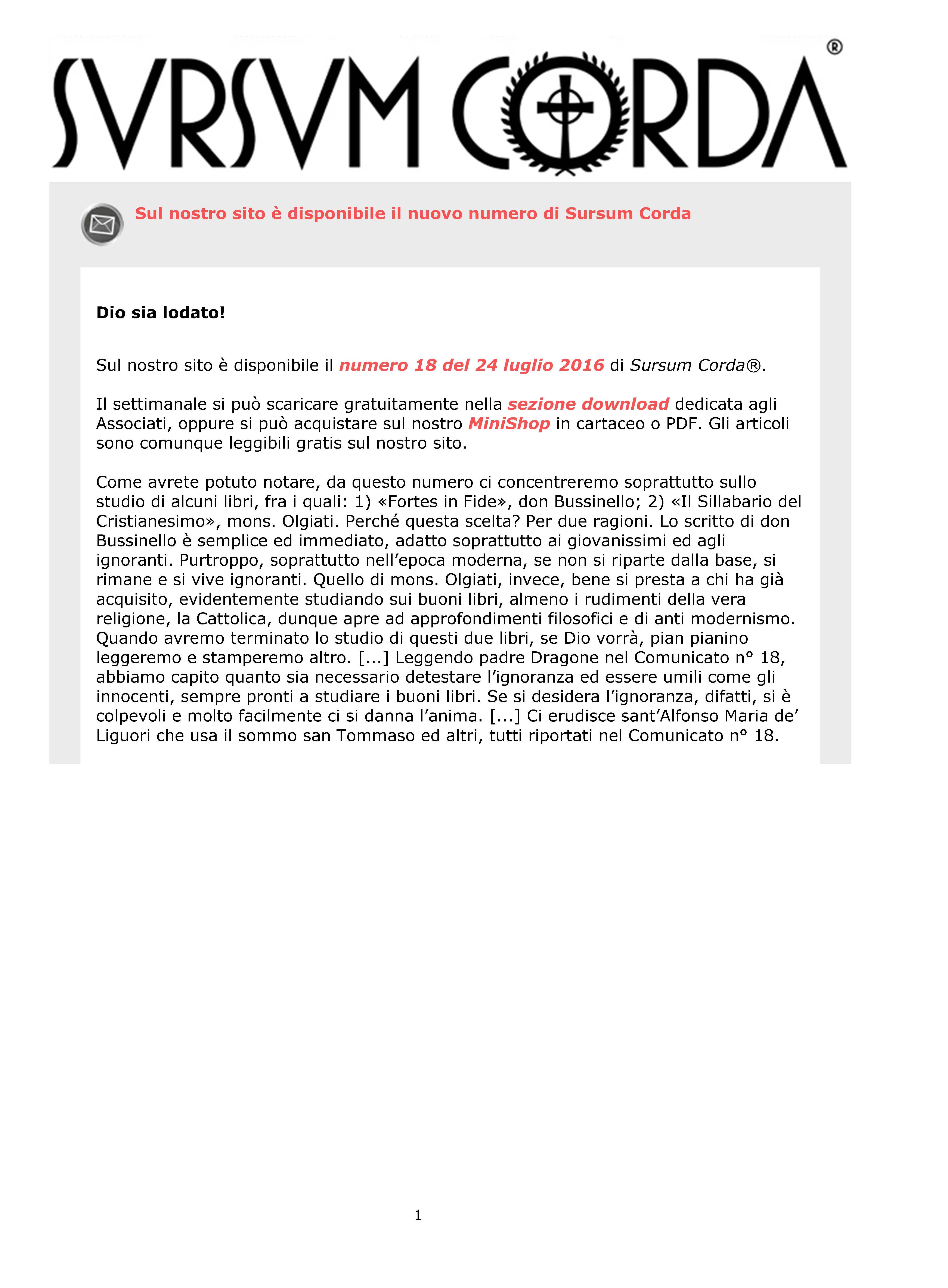 SURSUM CORDA E’ disponibile il numero 18 (24 luglio 2016) di Sursum Corda 25 Luglio 2016 da Staff "Christus Rex" Condividi su: